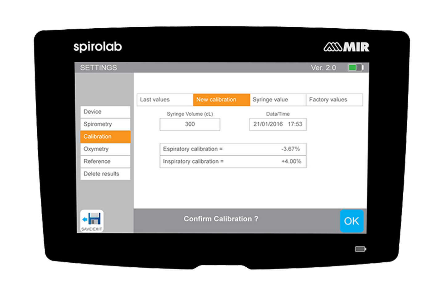 FVC, FEV1, FEV1/FVC, FEV1/VC, PEF, FEF25, FEF50, FEF75, FEF25–75, FEF75–85, Věk plic, Odhadovaný objem, FET, Time to PEF, FEV0.5, FEV0.5/FVC, FEV0.75, FEV0.75/FVC, FEV2, FEV2/FVC, FEV3, FEV3/FVC, FEV6, FEV1/ FEV6, FEV1/PEF, FEV1/FEV0.5, FIVC, FIV1, FIV1/FIVC, PIF, FIF25, FIF50, FIF75, FEF50/FIF50, VC, IVC, IC, ERV, IRV, Rf, VE, VT, tI, tE, VT/tI, tE/tTOT, MVV (měřený), MVV (vypočítaný).